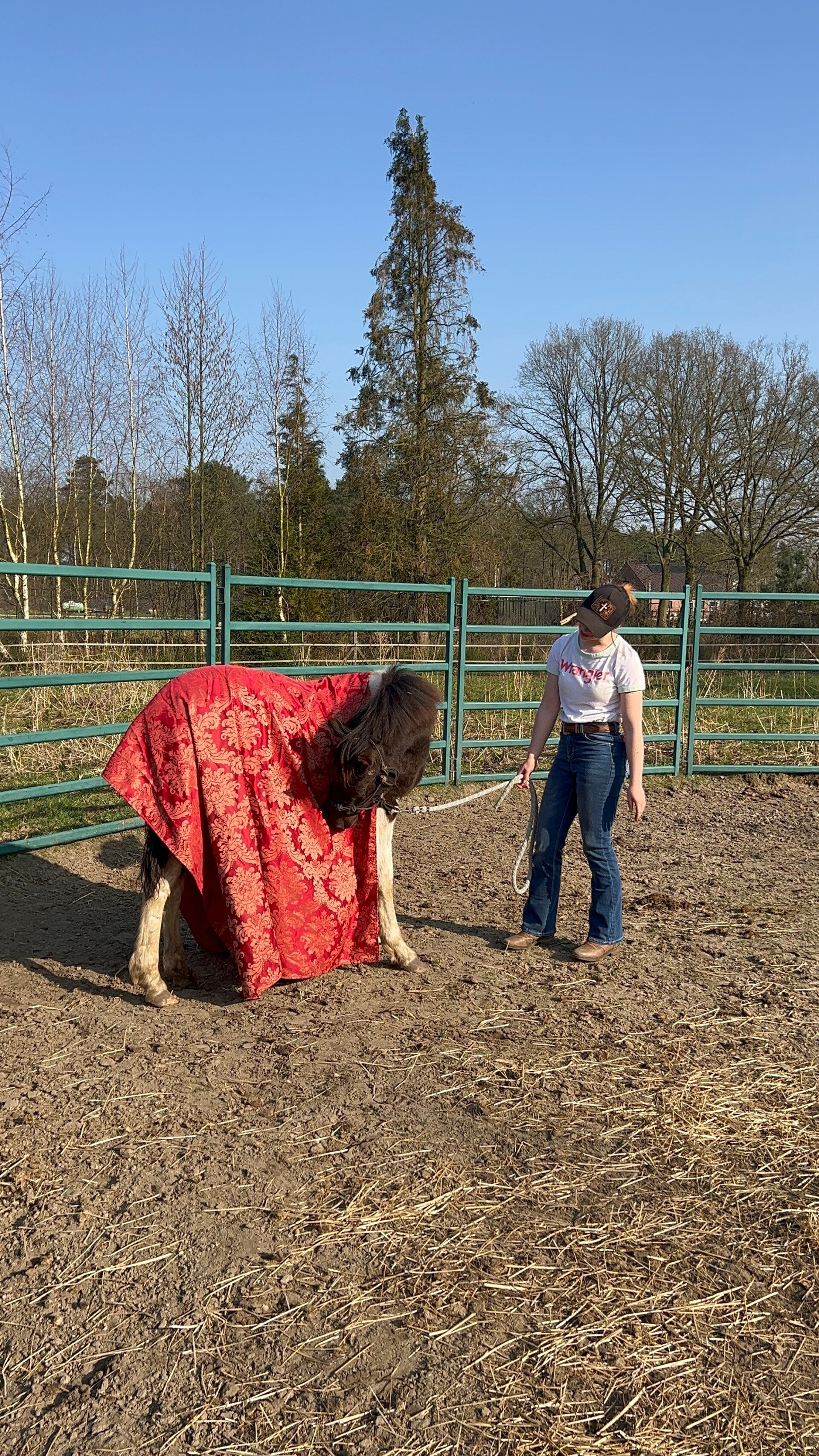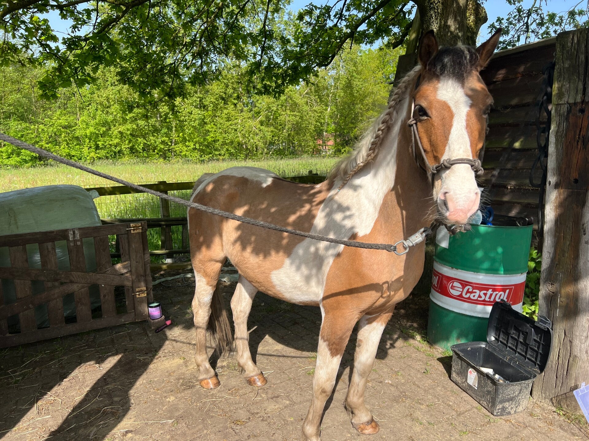 Mijn naam is Babette, ik ben als laatste toegekomen in deze leuke kudde. Ik ben in eens ook de jongste van de hoop. Eigenlijk ben ik een beetje een project pony. Mijn twee lieve baasjes Heaven en Sterre gaan mij opleren tot een echte lespony. Dit gaat nog wel even duren. Er mag pas over een kleine twee jaar op mij gereden worden en dan duurt het nog even voordat ik echt klaar ben voor de lessen. Ze zeggen wel allemaal dat ik super lief ben en ook een echte knuffel. Soms heb ik wel mijn eigen willetje maar hey zo moet dat toch he.